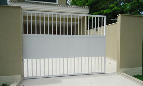 Portão de correr em alumínio com tubo 12x25mm 45º na horizontal (PD1M7)